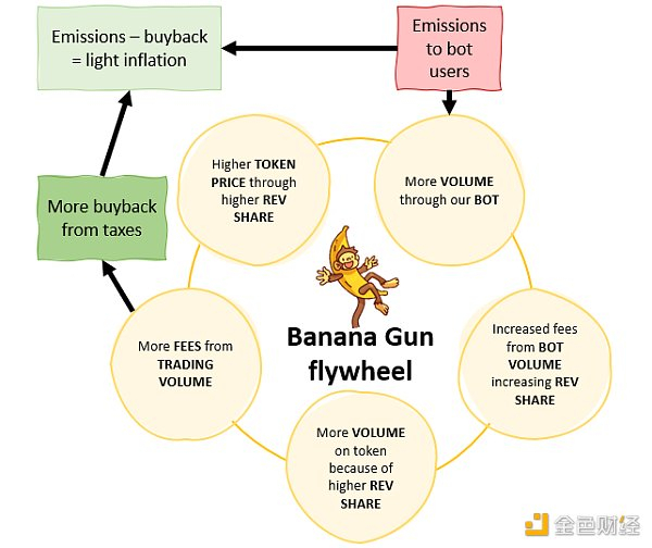 香蕉枪拥有一套完善的营收、分润、奖励和回购机制,在理想情况下可以实现正向飞轮(图4),每部分具体情况如下: