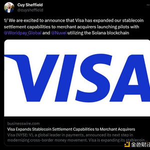 1、Visa扩展稳定币结算