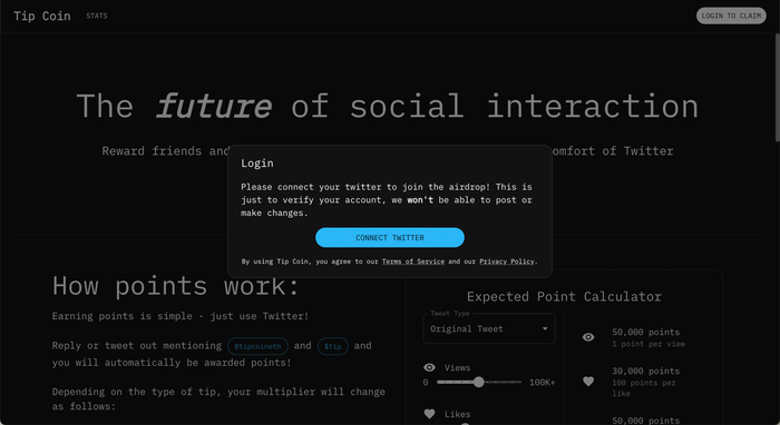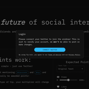 Tip Coin 是一个依托于 X(前 Twitter)并结合加密货币的新型社交类项目,旨在通过「发推挖矿」让用户通过参与内容创作赚取积分(后续可能会变成项目代币)。
