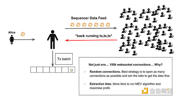 过多的连接是一种资源浪费,是对 Arbitrum Sequencer 的潜在拒绝服务攻击,并且只对能够在延迟游戏中成功竞争的搜索者有利。