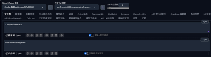 06.我们回到提示词部分,我们输入一个男孩,模型大家也要选择合适的模型,这里我选择是巧克力的男模。