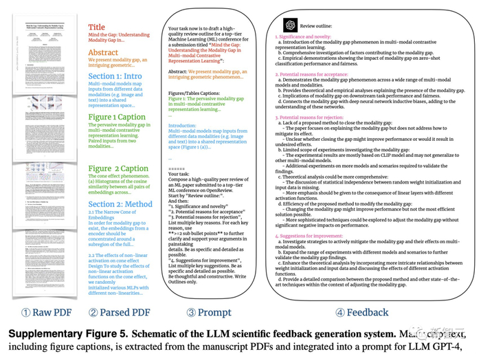 非常简单,只要从论文PDF中提取出文本,喂给GPT-4,它就立刻生成反馈了。