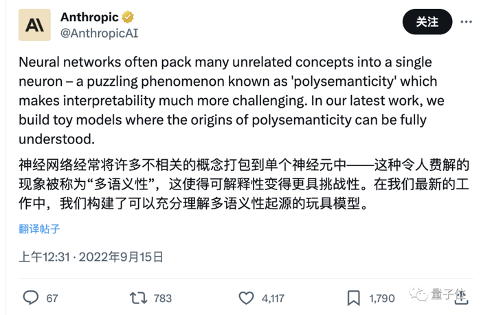 ChatGPT最强竞对Claude背后的公司Anthropic,利用字典学习成功将大约500个神经元分解成了约4000个可解释特征。