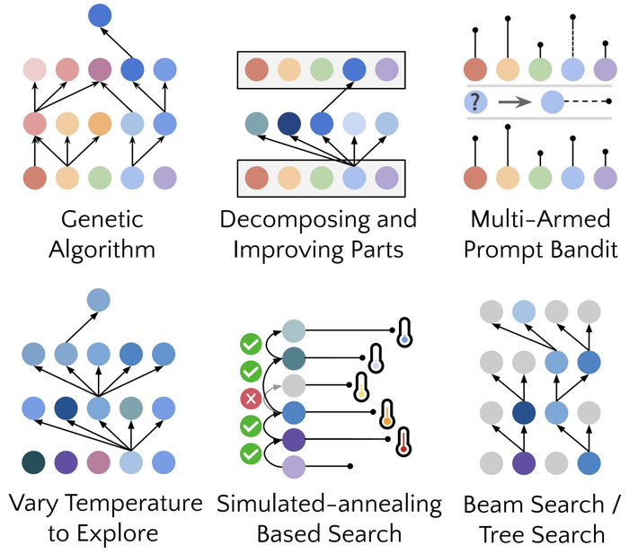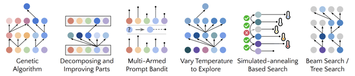 只要重复的过程次数足够,GPT-4就会提出很多非常有创意的代码自我改进策略,例如遗传算法、模拟退火或者是多臂提示赌博机。
