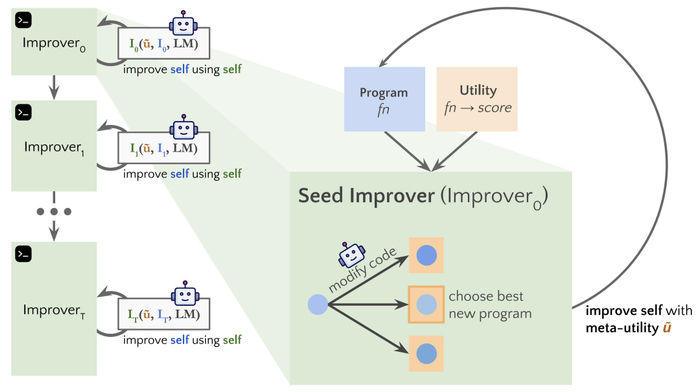 因为「改进代码」是一项任务,所以研究人员可以将「优化器」传递给它本身!然后,不断重复这个过程。