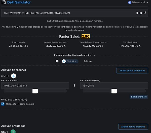 DeFi Simulator 提供使用者一个友善的 UI 界面来模拟 AAVE 仓位的各种变化,使用者能够修改风险参数的并模拟出对于 Aave 头寸的影响,用户将能即时了解风险参数变化对健康因素、清算价格和借贷能力的影响。