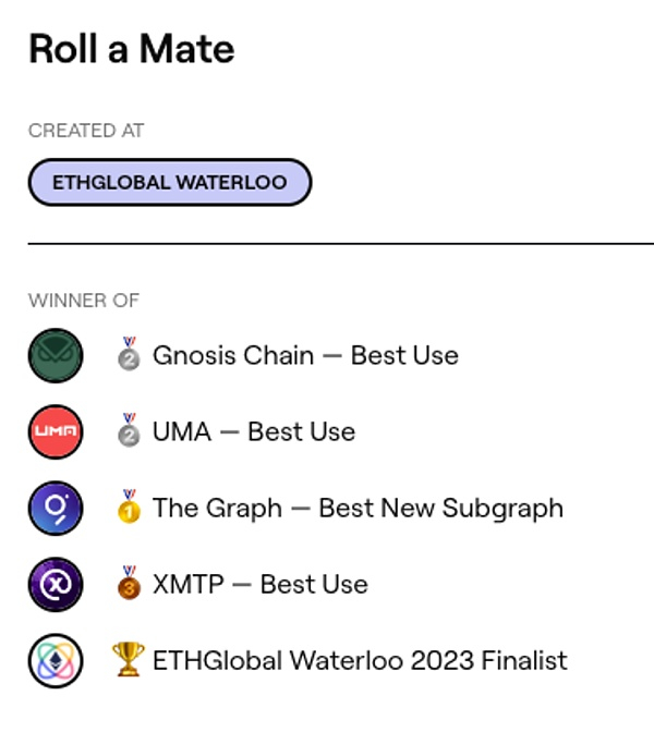 Roll a Mate 在近期的 ETHGlobal Waterloo 2023 中获奖无数,其项目愿景为在以太坊主网提供低廉的交易费用,使用者仅需支付 0 - 0.04 美金的交易费用。