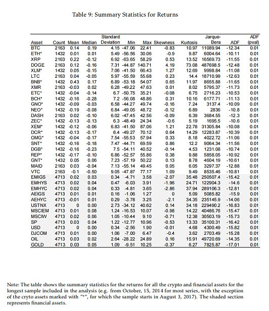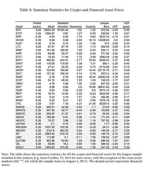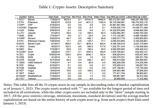 表1:加密货币资产相关描述性统计数据