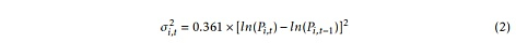 文章对资产收益率和波动率都进行了分析。之所以要同时考虑这两个因素,是因为它们在捕捉资产相关性的方式上存在一些差异。例如,收益率的正相关性意味着价格之间的正相关性。但波动率并不一定如此,因为在资产价格向相反方向大幅波动的情况下,也会出现波动率之间的正相关性。由于是二阶矩波动率也往往表现出更大的“峰值”,这突出了价格大幅波动的时刻,有助于确定特定冲击的时间。文章对收益率和波动率的计算方法如下:
