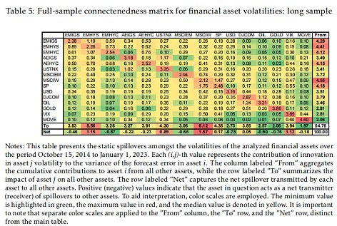 表6:金融资产波动率的全样本连通性矩阵