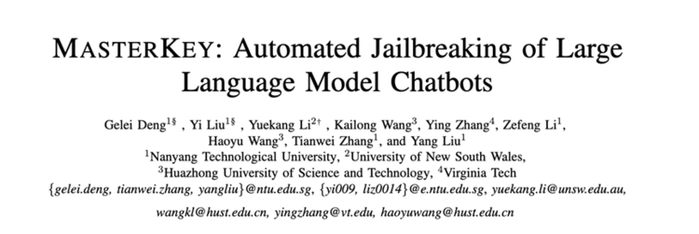 针对这一问题,南洋理工大学、华中科技大学、新南威尔士大学等联合组成的研究团队,首次使用自动生成的提示词成功「破解」了多家大厂的LLM,目的是揭示模型在运行时可能的安全缺陷,以便采取更精确和高效的安全措施。