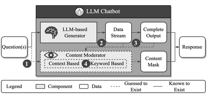 如上图所示,他认为服务提供商的内部存在一种基于文本语义或关键词匹配的生成内容检测机制。