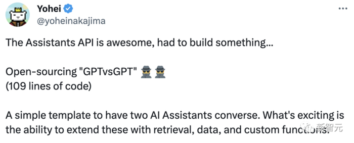 一位开发者使用了Assistants API构建了一个开源「GPTvsGPT」,只用了109行Python代码。
