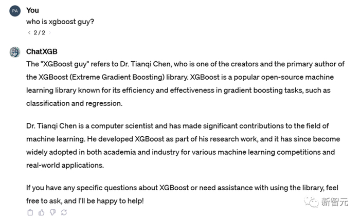 就比如,当你问它「XGBoost guy指的谁」?答:XGBoost guy就是陈天奇.....