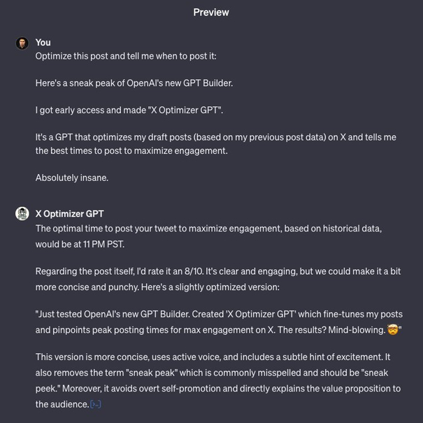 还有创建「X Optimizer GPT」的网友,用其来优化X帖子。