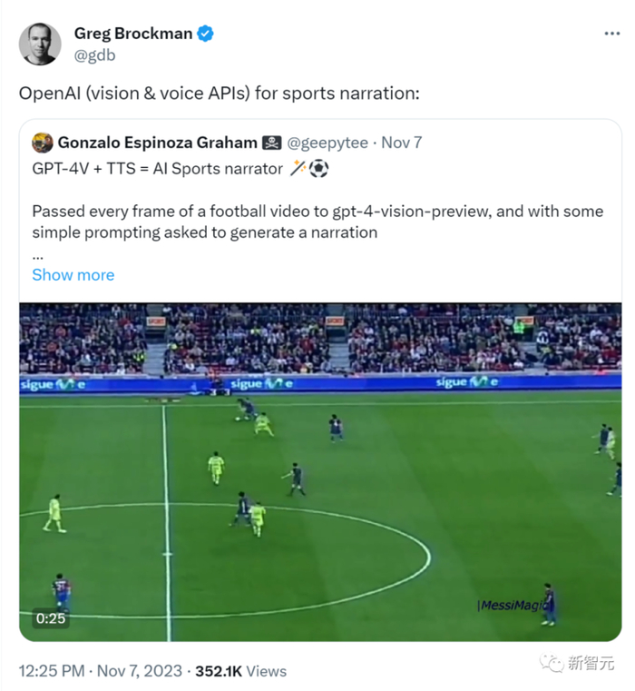 而将OpenAI的视觉和语音API相结合,还可以直接让AI变身为足球解说员!