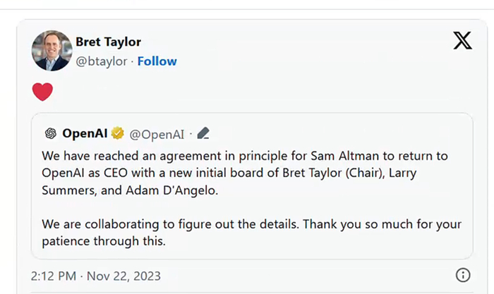 故事到这里,这场引发轰动的硅谷明星公司内部“内斗”事件,似乎以阿尔特曼压倒性的胜利画上了句号。