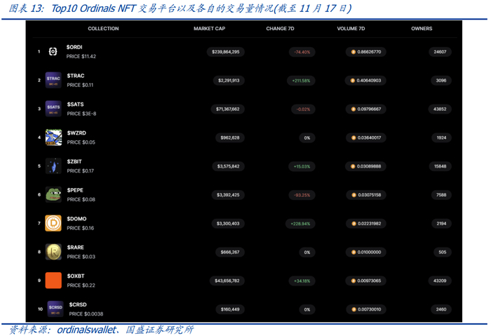 目前,Ordinals NFT生态中已经出现了多个NFT项目,代表项目包括: