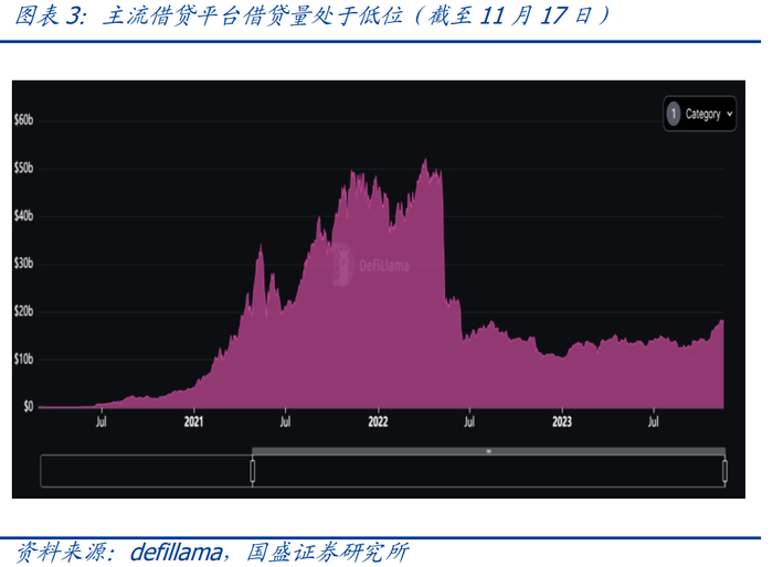 另外,GameFi、CreatorFi、Xto Earn等都是通证在使用场景中的不断创新。这些创新在前期为以太坊生态注入了活力,并且直到现在还依旧活跃在以太坊上。以去中心化交易所(DEX)和借贷平台为例,过去一年中去中心化交易所的每日平均交易总额大约为20亿美元,而今年3月11日最高超过300亿美元的每日交易额;而借贷平台借贷量大约在130亿美元的规模上下波动,离2021年11月至2022年的5月的500亿美元的量级相差甚远。