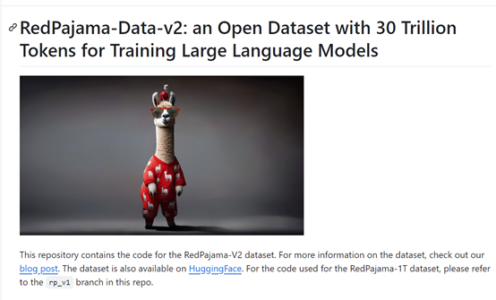 最近,又开源了专门用于训练大语言模型的30万亿训练数据集RedPajama-Data-v2,这也是目前最大的开源数据集。