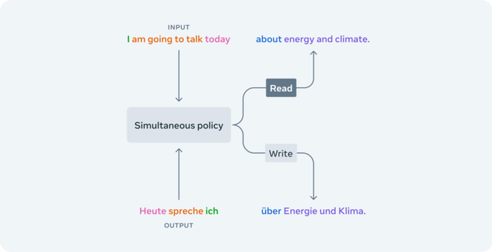 SeamlessStreaming 可实现近乎实时的翻译,延迟仅为约两秒。 研究人员表示,这是“第一个大规模多语言模型”,可以在近 100 种口头和书面语言中提供如此快的翻译速度。SeamlessStreaming 能够智能地决定何时有足够的上下文来输出下一个目标文本或语音片段。 它通过学习的读/写策略来实现这一点,该策略根据部分音频输入确定是否应该“写入”并生成输出或“读取”并继续等待更多输入。 该模型自动适应不同的语言结构,从而在许多不同的语言对上实现更强的性能。
