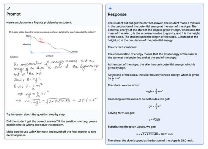 Gemini读出了图中学生解题思路的问题,并且成功做出了答案。
