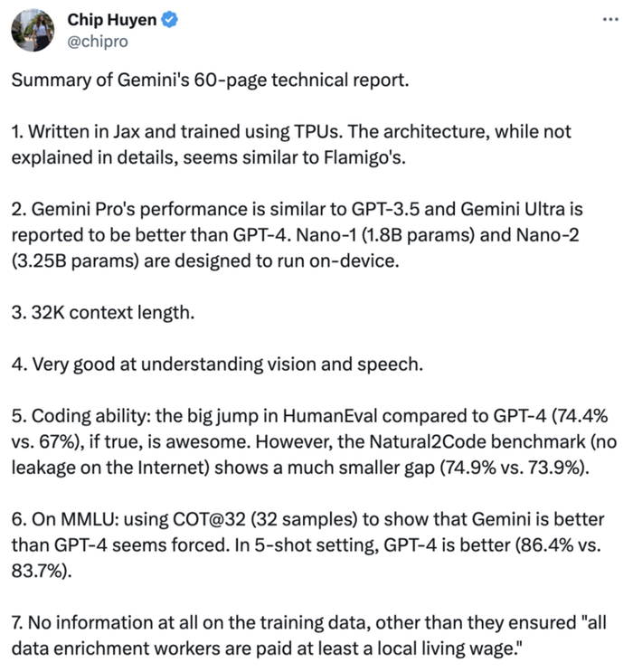 关于60页Gemini技术报告,网友做了一个浓缩版。