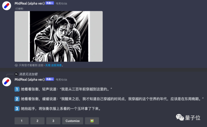 每生成一段内容,就会结合剧情给出对应的插图。无论是画面质量还是表达内容,都很不错。