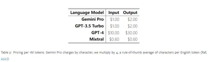 作者选择了 Gemini Pro、GPT 3.5 Turbo、GPT 4 Turbo、Mixtral 四个模型作为测试对象。