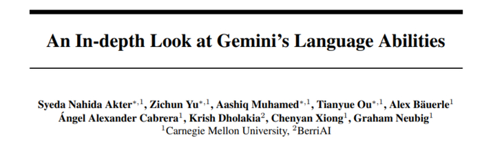 为了了解 Gemini 的真正实力,来自卡内基梅隆大学、BerriAI 的研究者对该模型的语言理解和生成能力进行了深入探索。