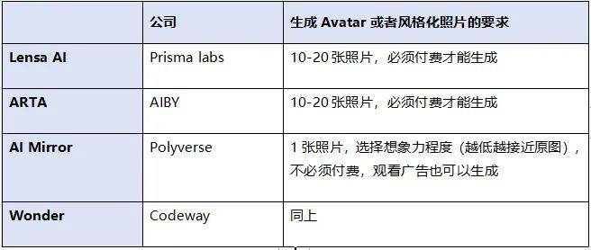 AI 生图 App 们对于 Avatar 生成也采用了不同的商业化模式