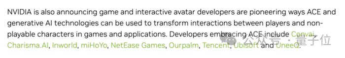 这一消息宣布后,马上就有多家游戏公司响应,比如育碧就宣布将会利用英伟达的AI工具来构建游戏角色。