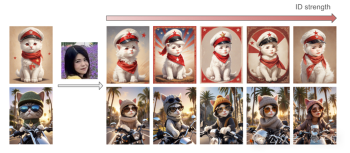可以看到,大家都挺“卷”的,效果都不赖——但仔细对比的话,PhotoMaker和IP-Adapter-FaceID保真度都不错,但文本控制能力明显差一点。
