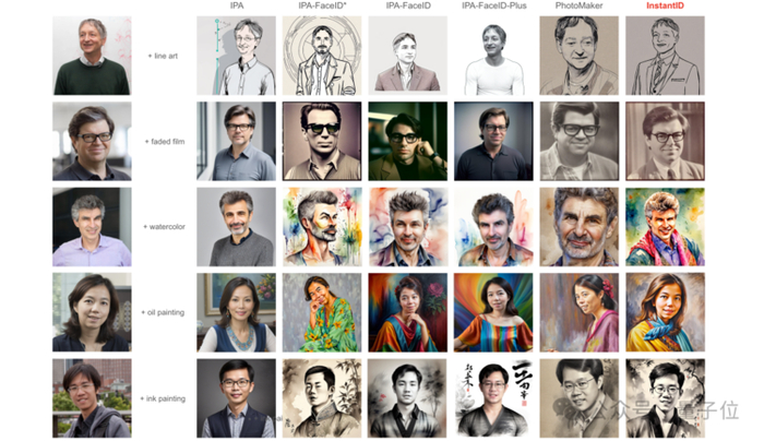 相比之下,InstantID的面孔和样式能更好地融合,在实现了更好保真度的同时,还保留了良好的文本可编辑性。