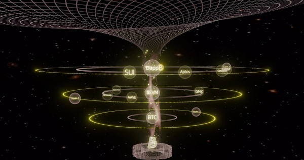 大意是,BEVM 构建了一个去中心化的 BTC “外汇”协议,简称 DBFX 协议,通过该协议可以把 BTC 无需信任地引入类似 SUI Network 这样的任意高性能公链,最终形成,BTC 为唯一货币层的 L1,BEVM 作为金融层的L2,任意链成为 BTC 的应用层 L3。
