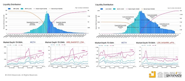 我们现在将检查每个以太坊分类中顶级代币的池。 这包括评估不同价格范围内的流动性分布,并观察市场深度的演变(类似于我们在 WoC 36 中建立的假设)。