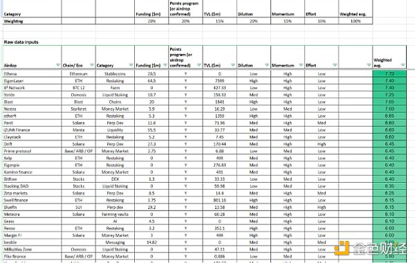 1、融资情况;2、积分计划;3、TVL;4、稀释;5、势头;6、努力
