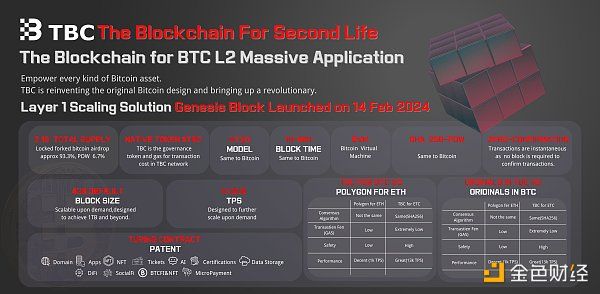 TBC 旨在通过 BVM【比特币虚拟机】,释放比特币参与 Defi、NFT、LSD 等 生态应用的潜力。TBC 的方法类似于 Polygon 对 ETH 所做的。