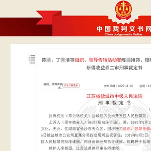 2020年11月19日,江苏省盐城市中级人民法院做出了二审终审裁定,对陈某等人维持原一审判决。