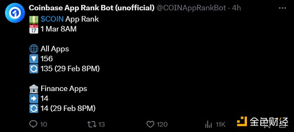 作为提醒,上个周期 Coinbase 在整个 App Store 应用排名中接近一年保持第一。