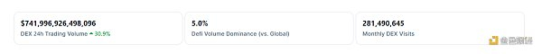 2、过去24小时去中心化交易所的交易量74.19亿美元