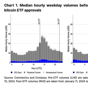 尽管加密货币是一个全球性行业,但美国市场交易时段(以及欧洲交易时段后期)的交易流量对市场的流动性和价格波动有着明显的巨大影响。 在美国现货比特币 ETF 获得批准之前,这种情况就已经存在,并且此后变得更加明显,尤其是在中心化交易所 (CEX) 平台上。 成交量的增加还意味着美国和欧洲交易时段的价格波动更大,以及全天市场回报的整体范围更大。