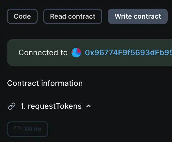 用户可以通过Plume 区块浏览器上的 USDC 水龙头获取测试网 USDC。使用钱包连接 Plume 测试网,然后点击「requestTokens」下方的「Write」即可获得 100,000 个测试网 USDC