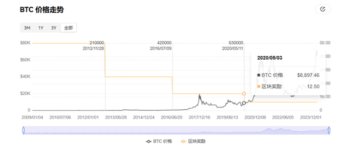 其中区块奖励开始是 50 个比特币,规则是每四年减半一次,目前已经减半过三次是 6.25 个,5 天后就是第四次减半,而到 2140 年比特币就不再有区块奖励;