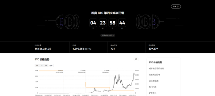 如今伴随着减半的临近,今年的三大利好即将兑现过半,可能会对新一轮市场演变造成影响——OKLink 统计数据显示,目前据第四次比特币减半的时间已剩余不足 5 天,预计为 2024 年 4 月 20 日,届时区块奖励将从 6.25 BTC 降至 3.125 BTC。