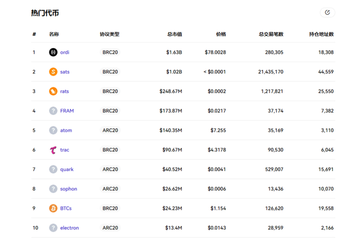 而 2023 年以来比特币生态尤其是 BRC20 的繁荣,掀起了‘BitcoinFi’的新浪潮,比特币生态内部交易的活跃达到新峰值,从而助推比特币的手续费收入激增——目前仅 ORDI、SATS、RATS 这三个新资产的总市值就将近 30 亿美元,总持仓地址数超 9 万个。