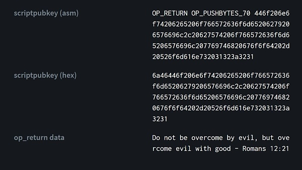 在比特币的第666,666个区块中,人们发现了一条隐藏的文本信息;这条信息引用了《圣经》经文:“不要被恶所胜,要以善胜恶 – 罗马书12: 21.”