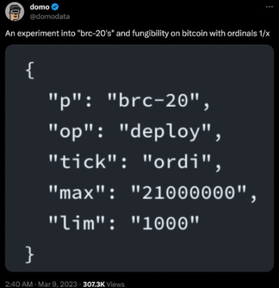 然而,Token 发行一直是智能合约区块链(如以太坊 / 索拉纳)所保留的领域。直到 Ordinals 理论无意中催生了 BRC20。