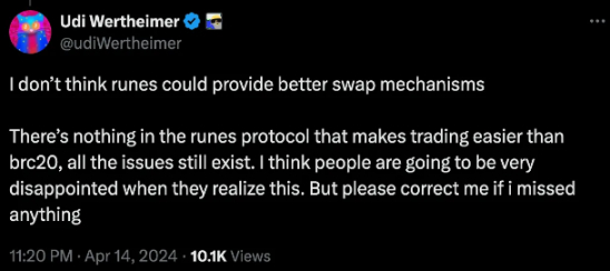 我分享这些是因为一旦符文上线,你很快就会开始看到类似‘Runestones’、‘铭刻’和‘法令’的术语在 Twitter 上被讨论。人们会尝试交易符文,但会面临问题,然后他们就肯定会在 Twitter 上寻找答案。