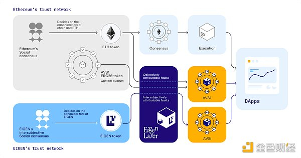 这个过程允许 EigenLayer 应用程序在代币级别分叉自身,从而允许对协议智能合约内部资产的控制权进行转移,而无需涉及以太坊的社会共识。